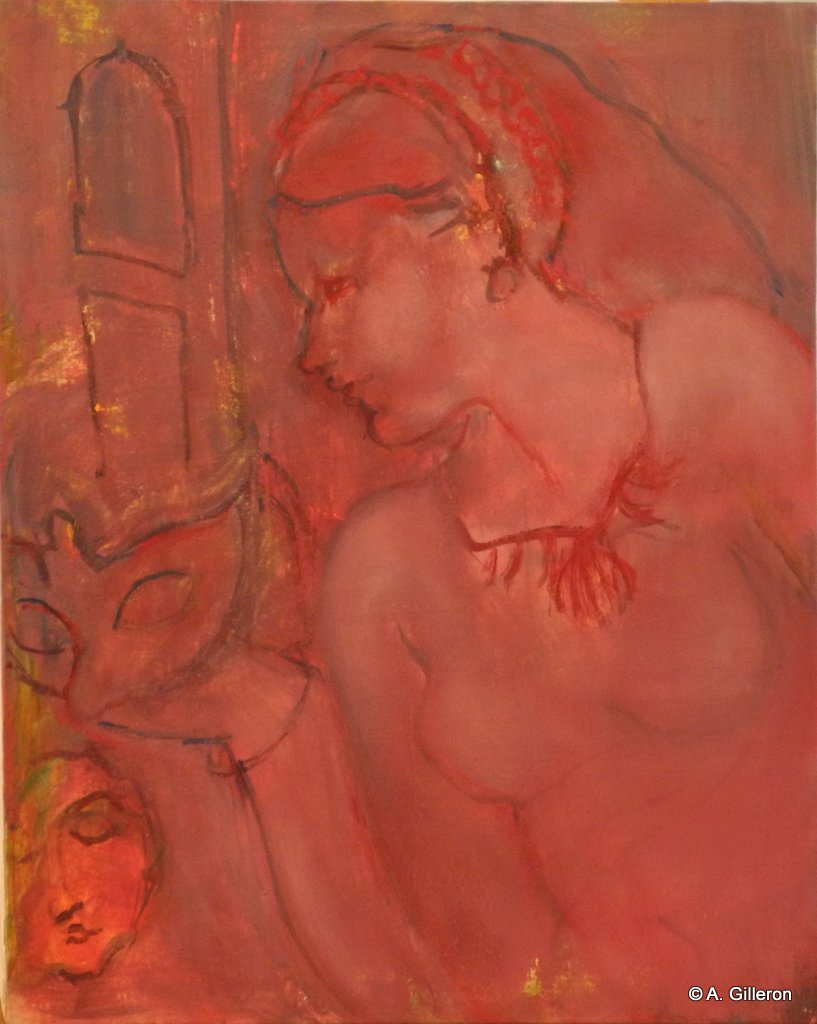H01 (réservé)- Profil au masque rouge (46 x 38 cm)